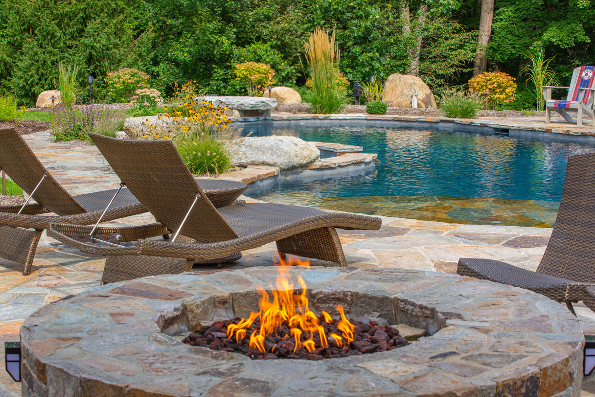 Add a touch of warmth and elegance to your poolside evenings with our captivating fire features. Whether it's a sleek fire pit or a stylish fireplace, our designs create a cozy ambiance, making your outdoor space perfect for relaxation and conversation even on cooler nights.